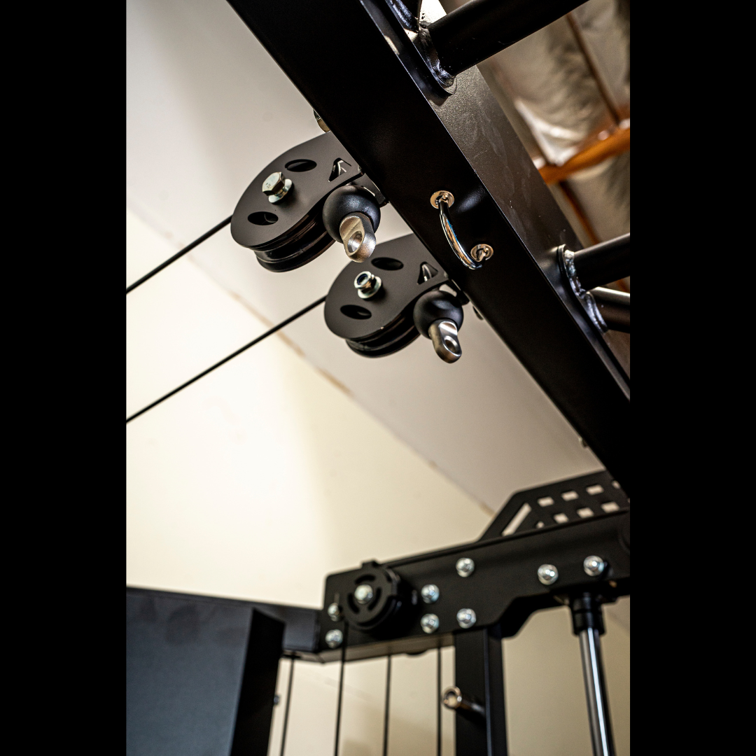 The high/low adjustable pulley system with swivel supports cable crossover and pull movements, while the high-quality bearing system ensures smooth, maintenance-free performance.